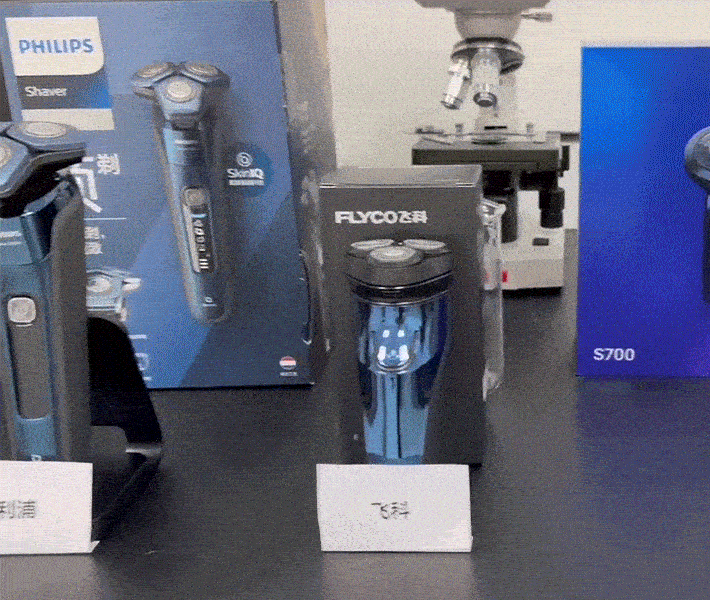 实验结果:左边的飞利浦剃净效果不及右边的AOT,