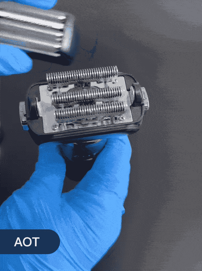 AOT采用往复式设计,机身全身肤感漆,手感细腻光滑非常高档,刀头采用分离式设计,后期维护成本大幅降低,并且是唯一使用三组刀片设计,用料考究。